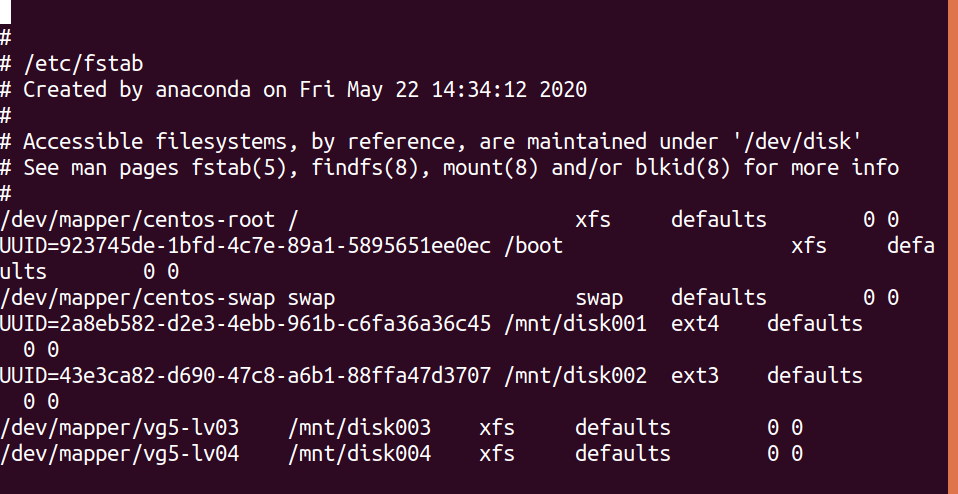 | Linux 파일시스템 생성 마운트 설정 (0) | 2021.05.11 |