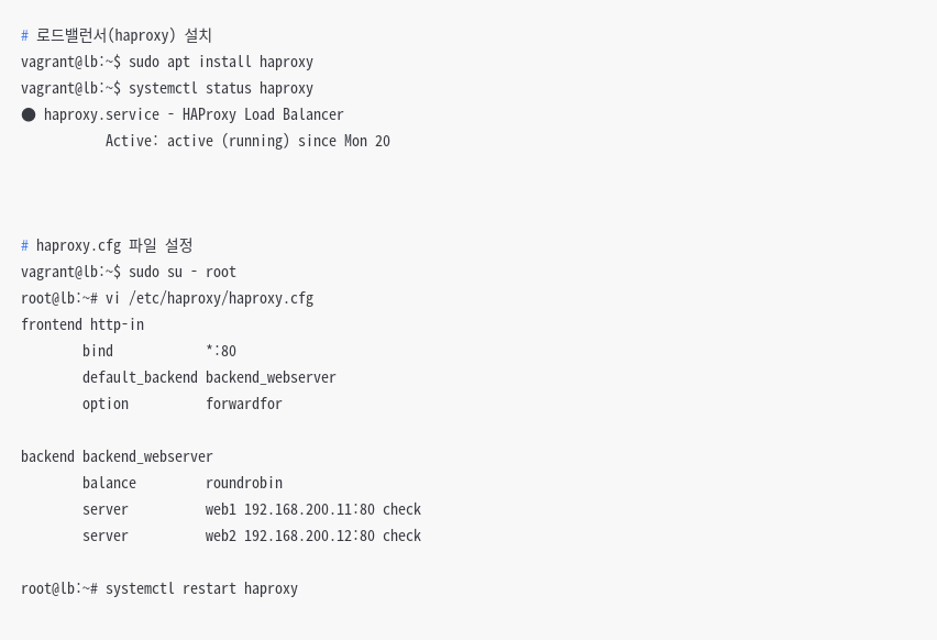 root@lb:~# vi /etc/haproxy/haproxy.cfg