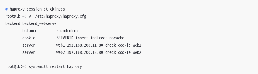root@lb:~# vi /etc/haproxy/haproxy.cfg