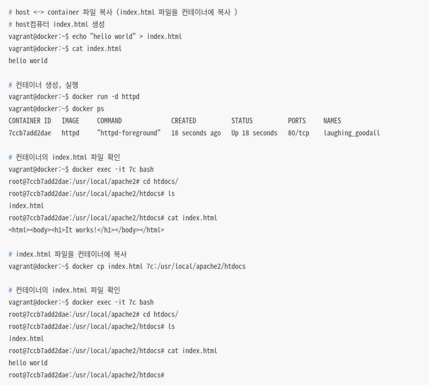 # host <-> container 파일 복사 (index.html 파일을 컨테이너에 복사 )
