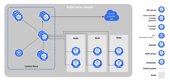 A Kubernetes cluster consists of the components that represent the control plane and a set of machines called nodes.