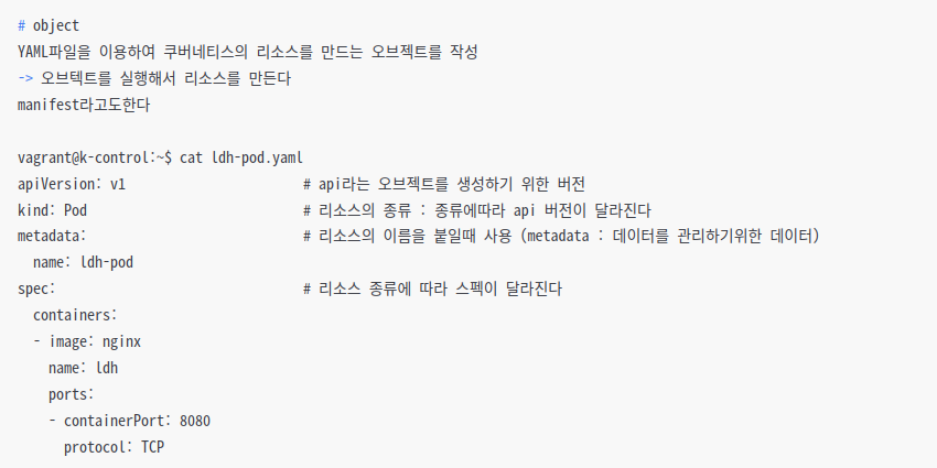 YAML파일을 이용하여 쿠버네티스의 리소스를 만드는 오브젝트를 작성