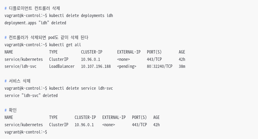 vagrant@k-control:~$ kubectl delete service ldh-svc