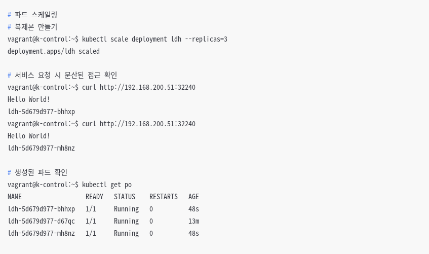 vagrant@k-control:~$ kubectl scale deployment ldh --replicas=3