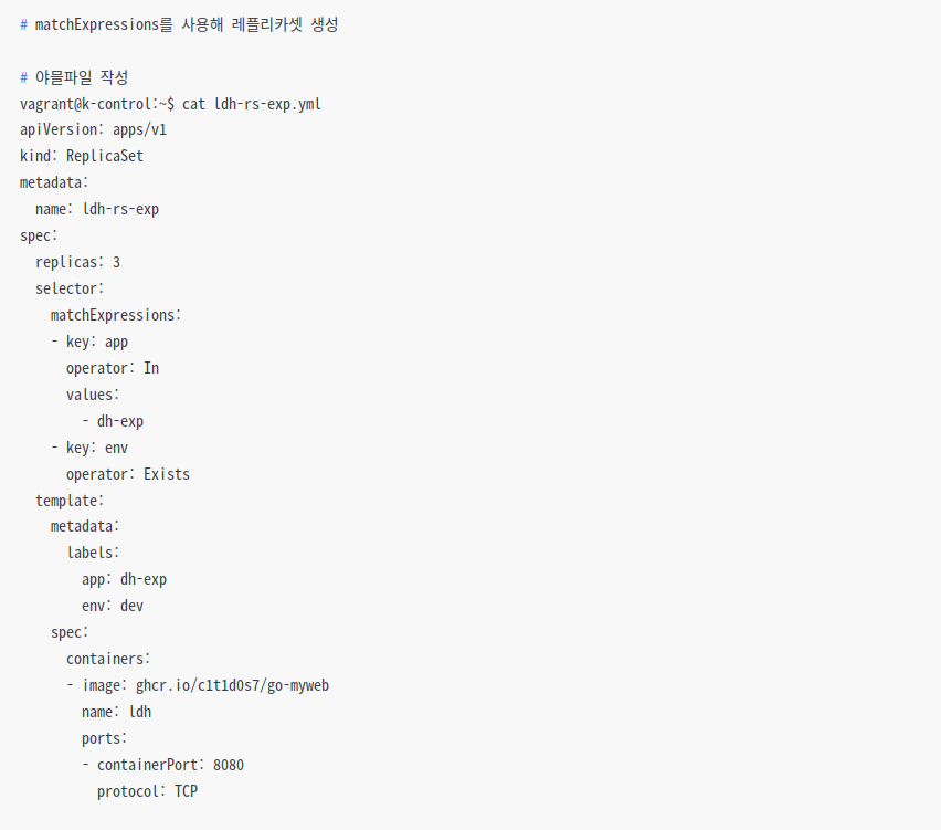 # matchExpressions를 사용해 레플리카셋 생성