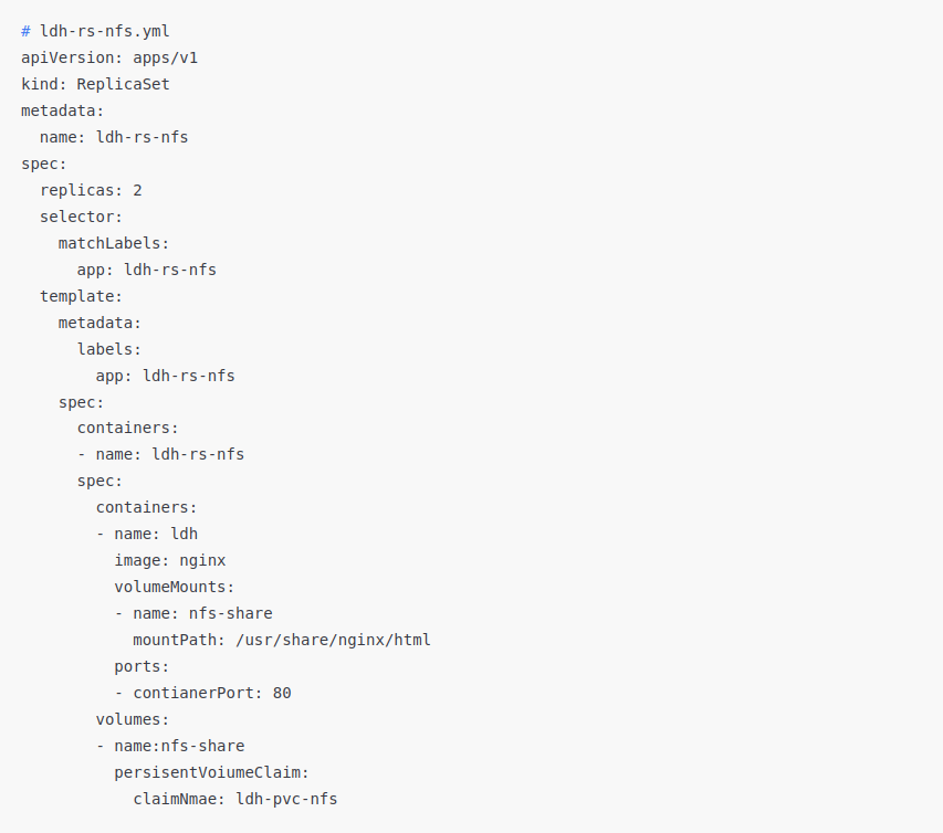 -NFS PVC 볼륨을 사용할 레플리카셋 리소스 정의 파일