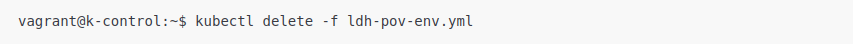 vagrant@k-control:~$ kubectl delete -f ldh-pov-env.yml