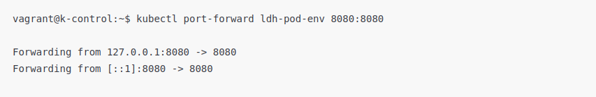 vagrant@k-control:~$ kubectl port-forward ldh-pod-env 8080:8080