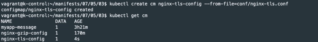 # TLS가 설정된 Nginx 설정파일을 컨피그 맵 으로 생성