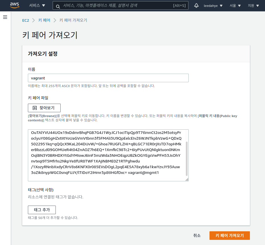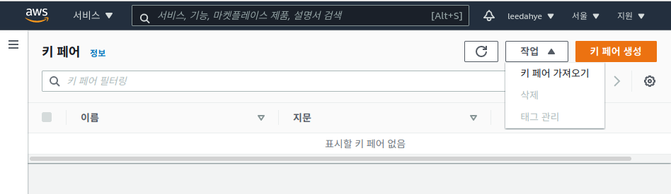AWS 에 공개키 등록하기