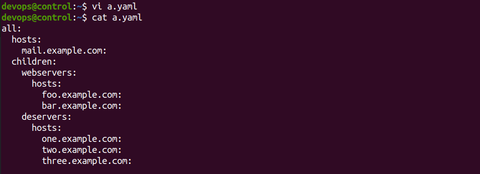정적 인벤토리는 INI 파일이나 YAML 파일 형식으로 구성 할 수 있는데 일반적으로 INI 형식을 많이 쓴다.