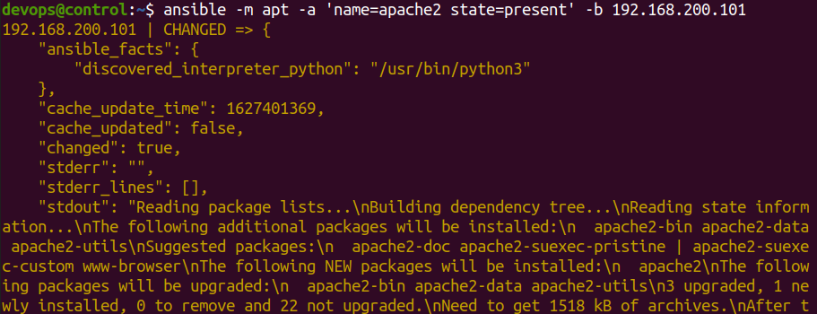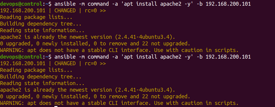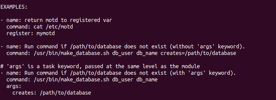 명령어 모듈은 최대한 사용하지 않는것이 좋다. apt, yum 모듈이 이미 만들어져있는데 명령어로 굳이 사용 할 필요가 없다.