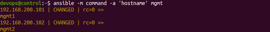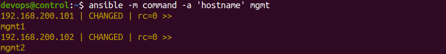 mgmt 그룹에 있는 모든 시스템에 hostname이라는 명령어를 실행한다