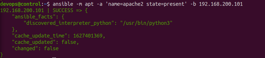 apache2가 존재해한다라고 이미 선언해서 존재하기 때문에 최종상태가 변하지 않아야 한다 (멱등성)
