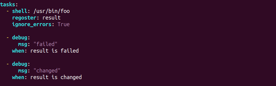 when: result is failed 이 작업이 실패하면 (result 변수가 fail이면)