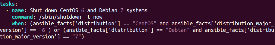 Ansible의 조건문은 when이라는 키워드를 사용한다 (다른 언어의 if문에 해당된다)