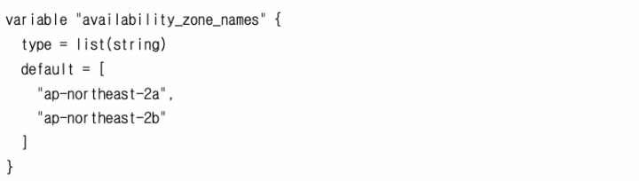 type = list (string) 리스트 타입이고 그 리스트가 문자열(string)로 되어있다