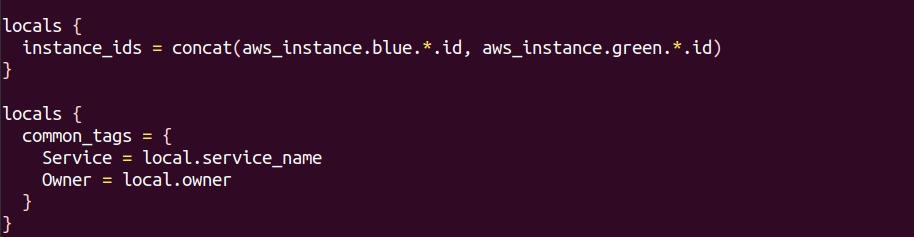 common_tags , service와 owner라는 키 지정 local이 다른 local을 참조한다. 값을 조합하고 가공