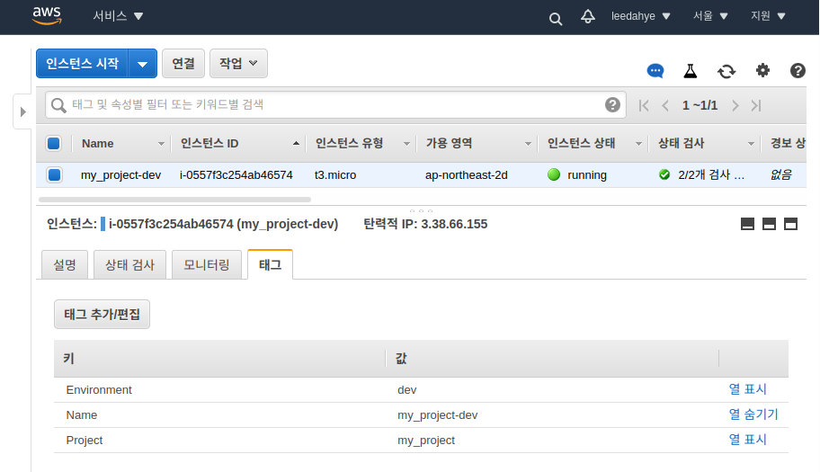 # 인스턴스 태그 확인