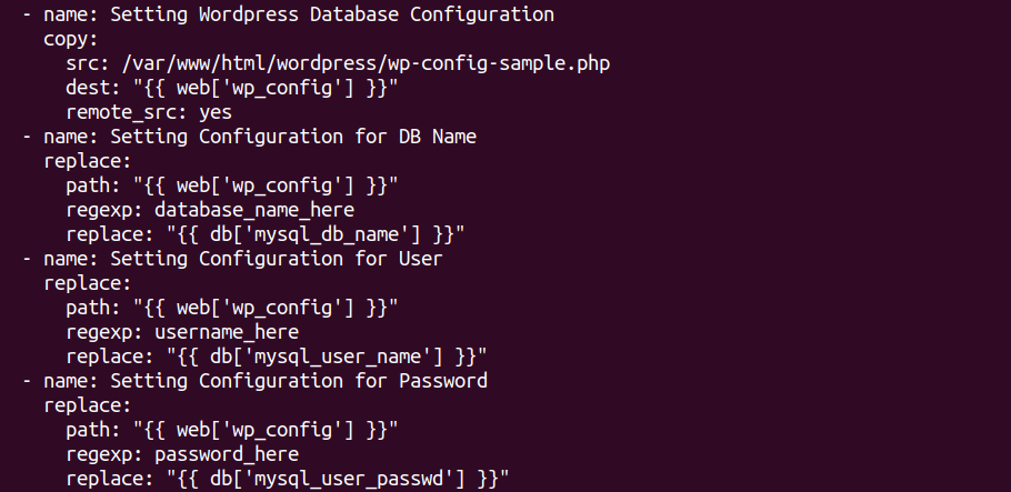 wp-config.php 설정 파일을 복사하여 확장자명이 j2인 파일을 생성하고, 필요한 부분을 수정한다.