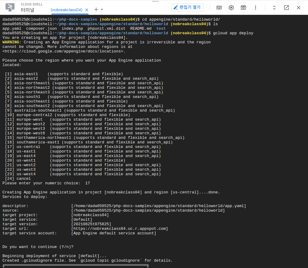애플리케이션 배포 ( app engine )