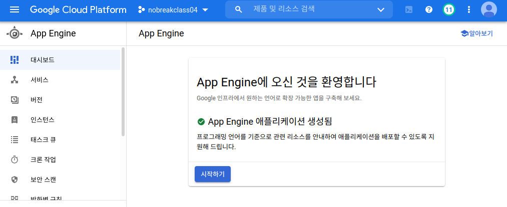 # App Engine 생성 확인