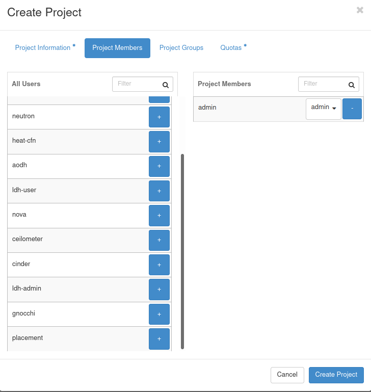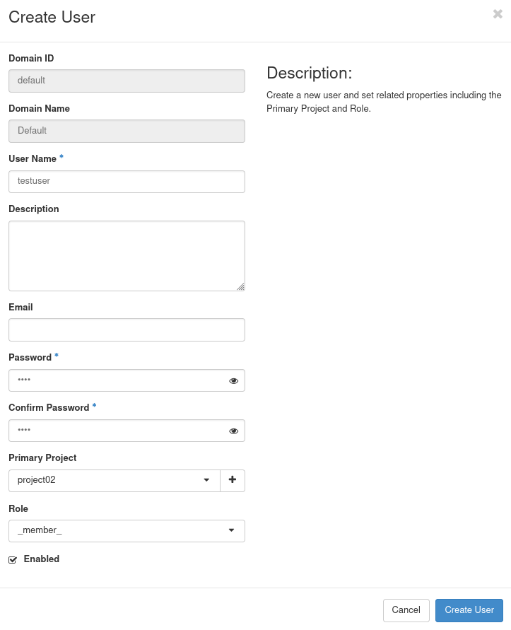 https://daaa0555.tistory.com/412 OpenStack 오픈스택 환경 구성 1 # admin 사용자로 project02 생성 admin에 admin 권한 할당 # testuser 사용자 생성 및 member 역할 할당 testuser 사용자 생성 하면서 project..