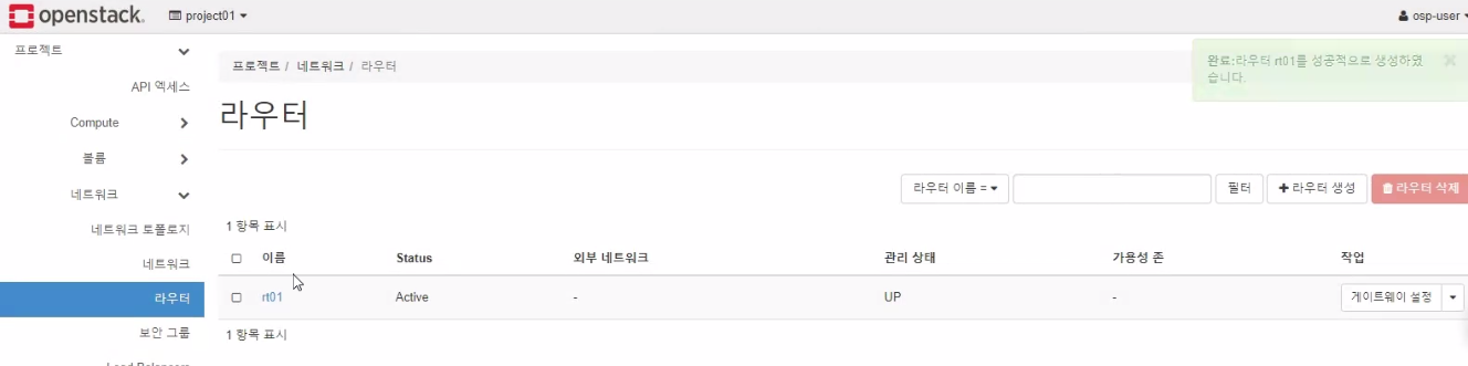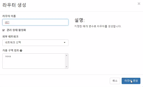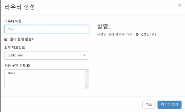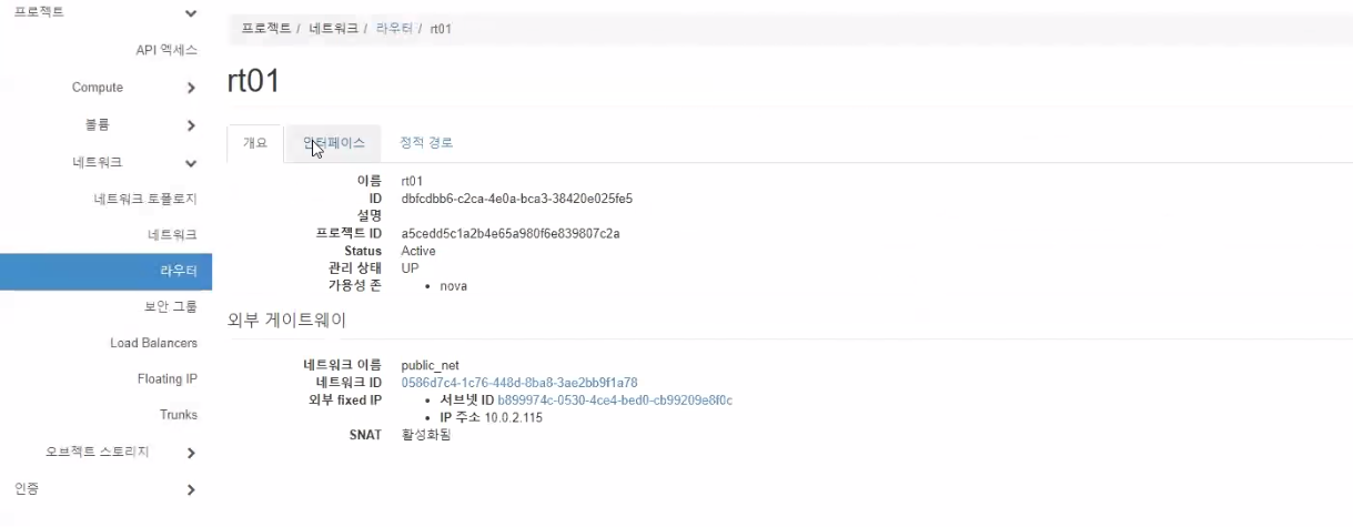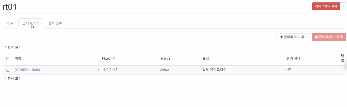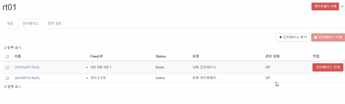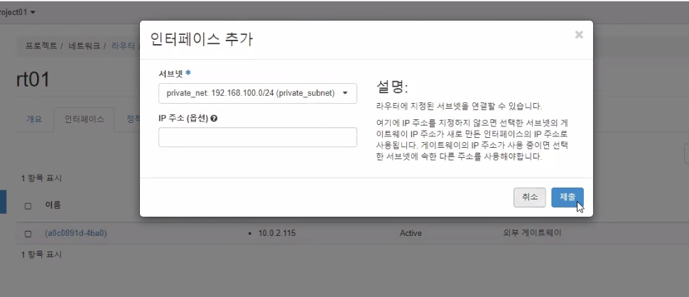 - 라우터에 인터페이스 추가 (내부네트워크)