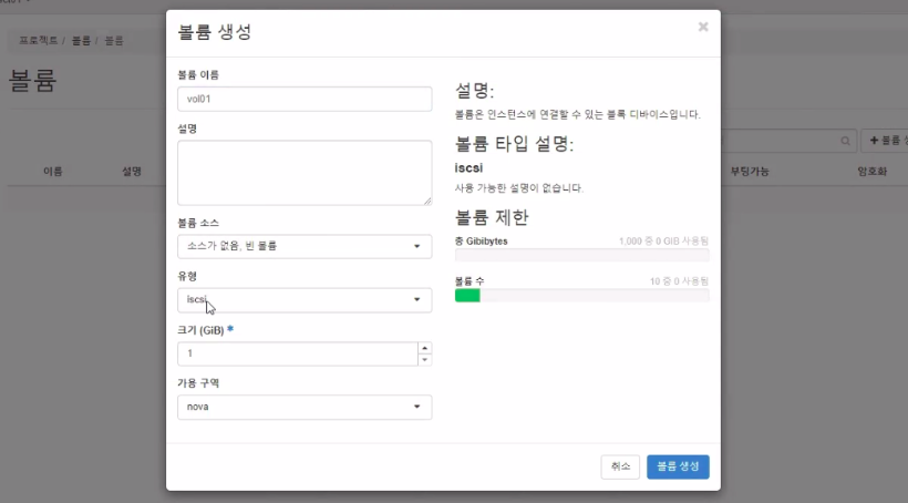 # 볼륨 생성