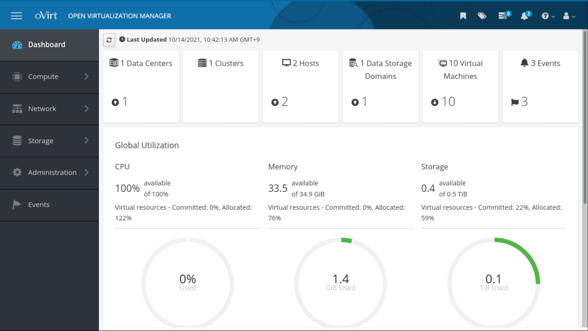 oVirt는 하나 이상의 엔터프라이즈 데이터 센터에 걸쳐 호스트, 가상 서버, 데스크탑을 한 곳에서 관리할 수 있는 오픈소스 가상화 플랫폼이다.
