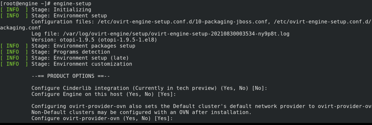 ovirt 클러스터를 구성하려면 엔진을 구축한 후에 호스트와 스토리지를 연결한다. 프로젝트에서는 엔진 이미지로 Centos8.4 버전 사용했다. 호스트네임, 네트워크 등의 기본적 설정을 마친 후 레포지토리를 인식시키고 engine-setup 커맨드를 통해 엔진의 자동구성했다.