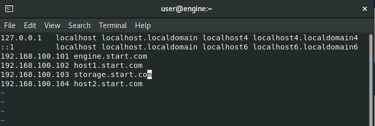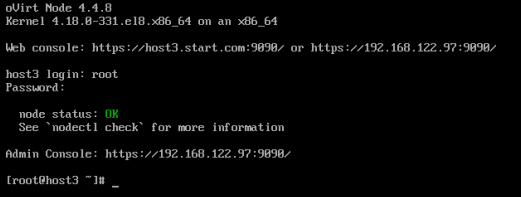 둘째로 가상시스템이 올라갈 호스트의 구성한다. 이미지로는 oVirt에서 지정한 ovirt node installer 를 사용한다. ovirt engine과의 통신을 위해 /etc/hosts 파일에 엔진의 도메인이름을 설정하고, 네트워크 대역대는 엔진과 동일하게 구성해준다.
