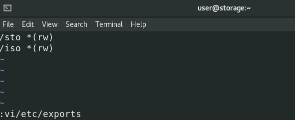 마지막으로 스토리지는 NFS 서비스를 사용했다. 이를 위해 먼저 스토리지 서버에서 저장소 디렉토리와 vm 디스크 이미지를 저장할 디렉토리를 마운트한다.
