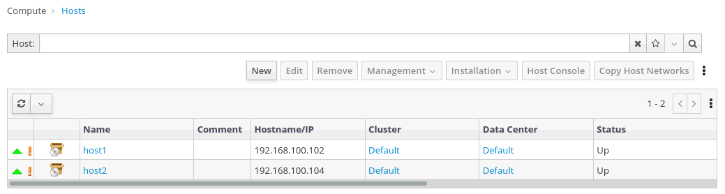 Host를 두 대로 구성하기로 했기 때문에 다음과 같이 host1, host2를 생성된 것을 볼 수 있다.
