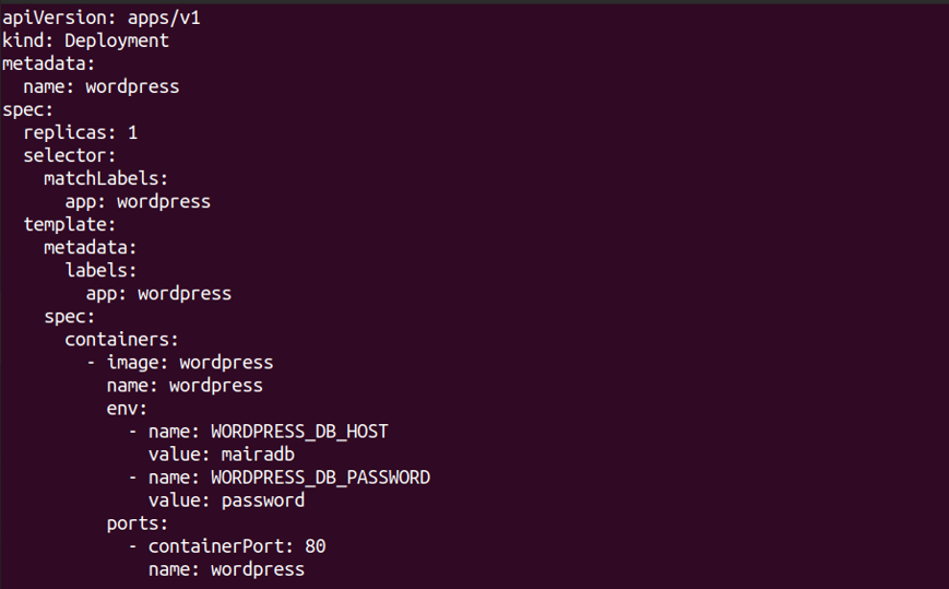 wordpress를 단일의 replica를 설정한 후에 yaml 파일을 통해서 배포한다.