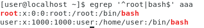 시작이 root이고 or bash로 끝나는 것을 찾아라
