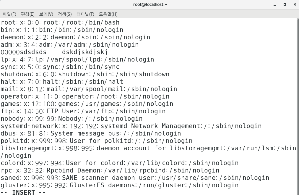 vi 파일이름 명령어를 치면 aaa파일의 vi편집기 모드로 들어갑니다.