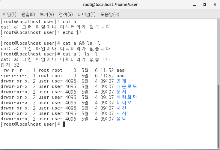 && 앞의 명령어가 참(True,0)이어야만 뒤의 명령어 실행