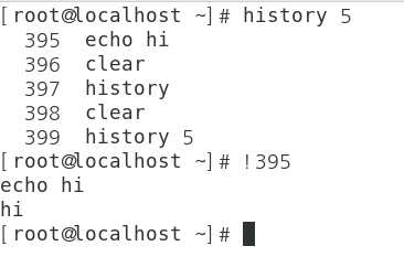 !(느낌표)뒤에 히스토리 넘버를 붙이면 그 명령어가 실행됩니다.