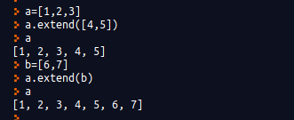 extend(x)에서 x에는 리스트만 올 수 있으며 원래의 a 리스트에 x 리스트를 더하게 된다.