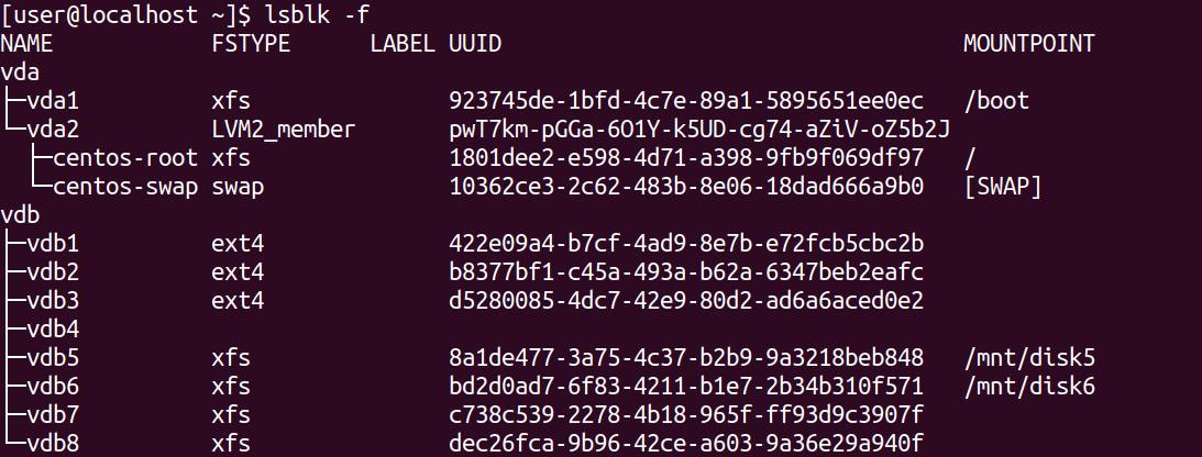 └─vdb8 xfs dec26fca-9b96-42ce-a603-9a36e29a940f