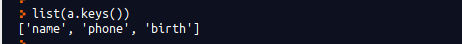 a.keys()는 딕셔너리 a의 Key만을 모아서 dict_keys 객체를 돌려준다.