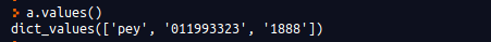 Key를 얻는 것과 마찬가지 방법으로 Value만 얻고 싶다면 values 함수를 사용하면 된다. values 함수를 호출하면 dict_values 객체를 돌려준다.