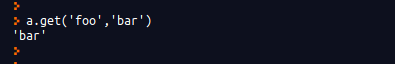 a 딕셔너리에는 'foo'에 해당하는 값이 없다. 따라서 디폴트 값인 'bar'를 돌려준다