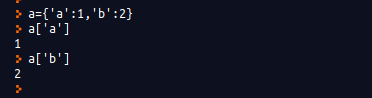 먼저 a 변수에 {1:'a', 2:'b'} 딕셔너리를 대입하였다. 위 예에서 볼 수 있듯이 a[1]은 'a' 값을 돌려준다. 여기에서 a[1]이 의미하는 것은 리스트나 튜플의 a[1]과는 전혀 다르다. 딕셔너리 변수에서 [ ] 안의 숫자 1은 두 번째 요소를 뜻하는 것이 아니라 Key에 해당하는 1을 나타낸다. 앞에서도 말했듯이 딕셔너리는 리스트나 튜플에 있는 인덱싱 방법을 적용할 수 없다. 따라서 a[1]은 딕셔너리 {1:'a', 2:'b'}에서 Key가 1인 것의 Value인 'a'를 돌려주게 된다. a[2] 역시 마찬가지이다.