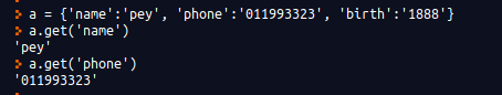 다만 다음 예제에서 볼 수 있듯이 a['nokey']처럼 존재하지 않는 키(nokey)로 값을 가져오려고 할 경우 a['nokey']는 Key 오류를 발생시키고 a.get('nokey')는 None을 돌려준다