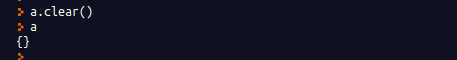 clear 함수는 딕셔너리 안의 모든 요소를 삭제한다. 빈 리스트를 [ ], 빈 튜플을 ( )로 표현하는 것과 마찬가지로 빈 딕셔너리도 { }로 표현한다.