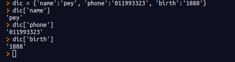 위에서 Key는 각각 'name', 'phone', 'birth'이고, 각각의 Key에 해당하는 Value는 'pey', '0119993323', '1118'이 된다.