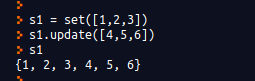 합집합은 다음과 같이 구할 수 있다. 이때 4, 5, 6처럼 중복해서 포함된 값은 한 개씩만 표현된다.